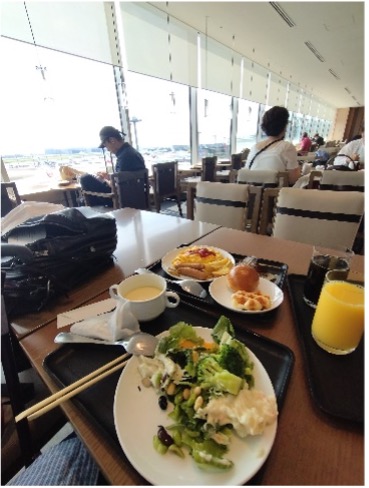 航空機に搭乗する前に時間がたっぷり2時間超もあるので航空会社のラウンジに入る。ラウンジで朝食を取るとみるみる鋭気が宿ってきた。なぁんだ、腹が減っていて気が沈んでいただけか!と、こんな単純な性格です。