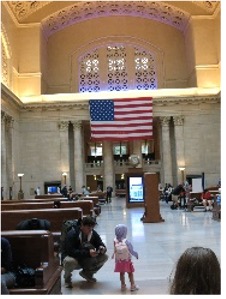 グレート・ホールには大きな星条旗が掲げられている。9.11以来このような光景はよく見てきたが昨日の空港でも多くの星条旗が掲げられていた。ちょっと待てよ、今日は7月4日金曜日、ホテルの周辺のオフィス街が閑散としていた。