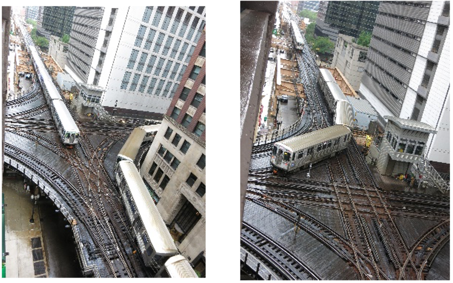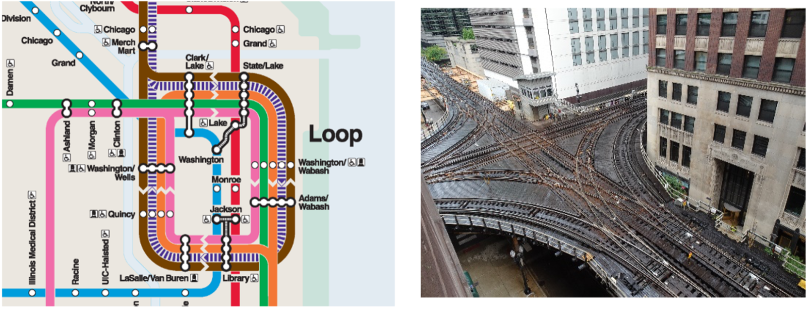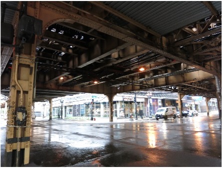 シカゴには高架鉄道と呼ばれる道路上に鉄骨で組み上げられた鉄道の高架があり、かつてはニューヨークなどにも存在していたが現存するのは、ここシカゴだけである。中心部にはその高架鉄道が町中を一周していて、その区間はLoopと呼ばれている。鉄骨の高架鉄道であるので電車が通過する際はガタンガタンと音が街に響き渡る。