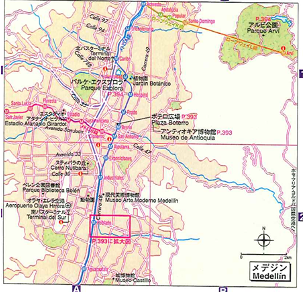 何かおかしい。私の脳には位置関係が理解できない。ホテルのWI-FIを使いマップを出すと、現在地は目的の〇○ホテルだ。さらに空港はすぐ近くにある。4ページしかないメデジン資料を目を凝らして見てみると、地図の端に⇒付きで〇○空港と縮小コピーした8年前のガイドブックに表示があり、欄外に新しい空港ができて多くの路線が新空港に移ったと書かれている。どうも新空港は山向こうの隣の市に近接した所にあるらしい。
